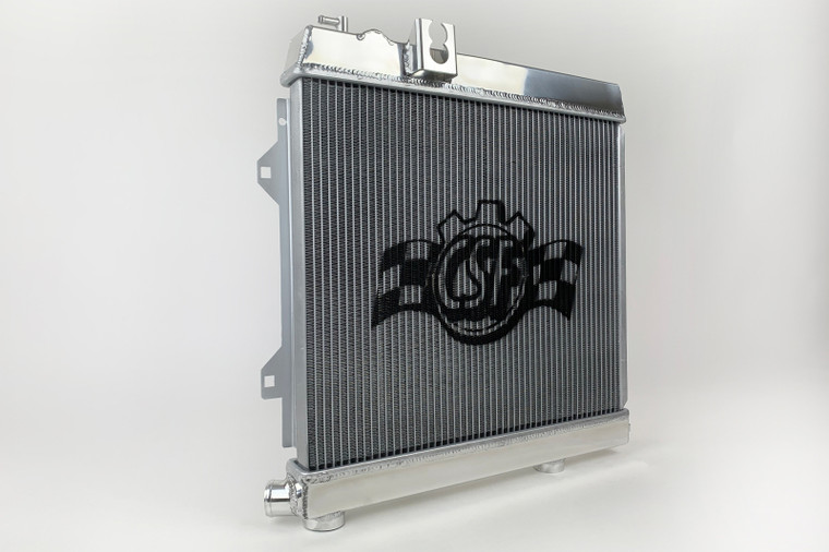 CSF has over 5 decades of experience manufacturing radiators. So when it comes to keeping your engine cool and your E30 M3 running at its best, a CSF High-Performance All-Aluminum Radiator is the obvious choice. Designed to perform on the street or at the track, a performance radiator is a must-have for both high horsepower builds as well as race vehicles which need added cooling performance in motorsports environments. This radiator features a 2-Row core with CSF's exclusive B-Tube Technology: Unlike a regular oval shape "O" type radiator tube, CSF uses a specially engineered tube in the shape of a "B". These "B-tubes" are carefully formed and then brazed over the seam to seal. CSF is able to use thinner and lighter aluminum material (with better cooling efficiency) because this design is actually stronger than normal "O" shape tubes that are welded. The design (inlet in the middle of the tube that is seam brazed) increases the heat transfer surface area of the tubes by approximately 15% over regular tubes - producing the efficiency of two smaller tubes vs. one large tube within the same space criteria. With "B-tubes" you are able to get "dual liquid laminar flow". CSF also uses ultra efficient multi louvered fins that are carefully and precisely aligned to maximize airflow through each radiator core. Fin specifications are carefully measured and calculated for each application, and tested for maximum heat rejection efficiency in our wind-tunnel lab.